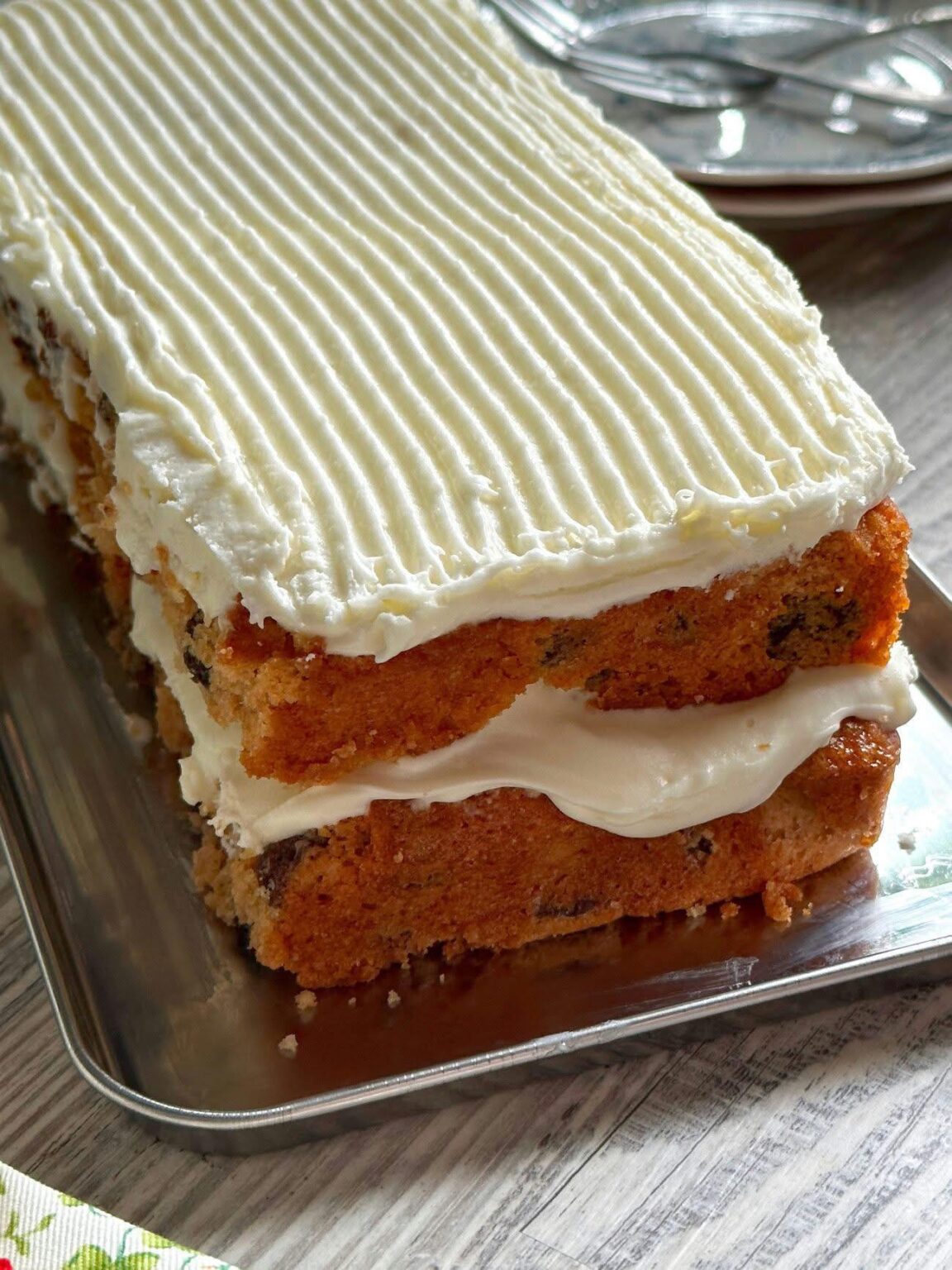 The Spanish Bar Cake is rich with cozy spices, tender raisins, and a moist crumb. The cream cheese frosting adds a tangy-sweet contrast, making every bite an indulgent balance of spice and creaminess. The cake’s deep color and aroma transport you to a simpler time — it’s pure comfort in dessert form.