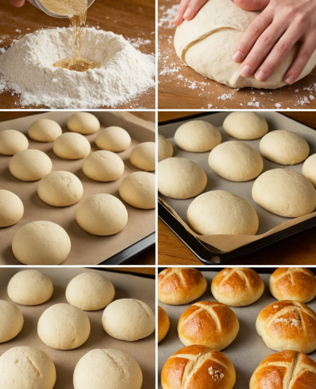 - Divide the dough into equal portions, shape into rolls, and place on a baking sheet lined with parchment paper. Let them rise for another 30 minutes.